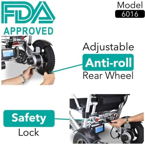 ?PORTABLE WHEEL CHAIR: The electric wheelchair is an innovative all-new design travel folding wheelchair. FDA Approval, This foldable wheelchair is convenient, Easy for the Aviation Travel. This electric wheelchairs for adults is a compact wheelchair that can travel anywhere you go.