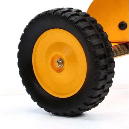 Retractable soft grip handle slides out allowing the user to pull the saw behind him comfortably with weight near the ground